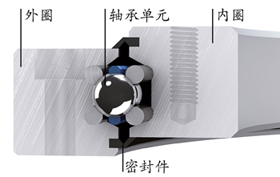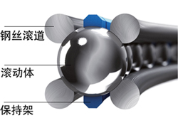 基于該原理:軸承的核心部件由四條鋼絲滾道組成。采用專門研發(fā)的磨削工藝,使其滾道與滾珠直徑完全匹配,滾動(dòng)體在四條鋼絲滾道上平滑滾動(dòng),不與周圍結(jié)構(gòu)發(fā)生接觸。借助四點(diǎn)接觸幾何結(jié)構(gòu),可承受來(lái)自任何方向的負(fù)荷。