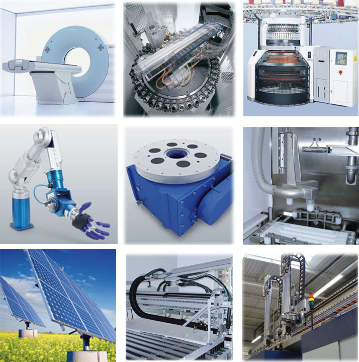 Franke產(chǎn)品在太陽(yáng)能、醫(yī)療、紡織、玻璃、木業(yè)、石材、環(huán)保、機(jī)床、食品、包裝、自動(dòng)化、航空航天等行業(yè)擁有廣泛的應(yīng)用。在一些行業(yè)擁有獨(dú)特的優(yōu)勢(shì),例如:計(jì)算機(jī)X射線斷層掃描成像儀(CT)、加工中心、紡織機(jī)、芯片制造機(jī)器、旋轉(zhuǎn)式分度臺(tái)及機(jī)器人等。